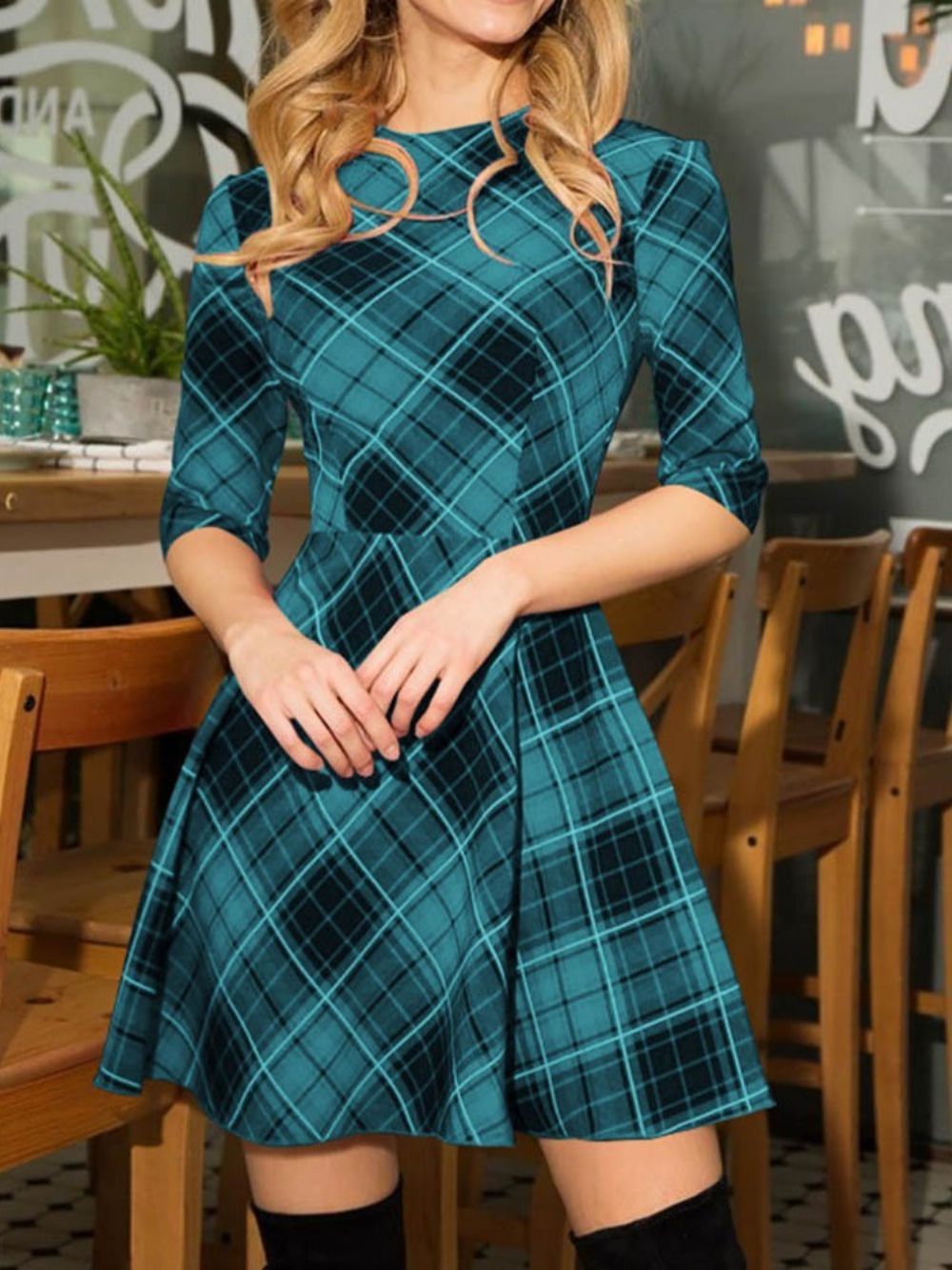 Vestido Feminino Moda Pulôver De Retalhos Acima Do Joelho Manga Três Quartos